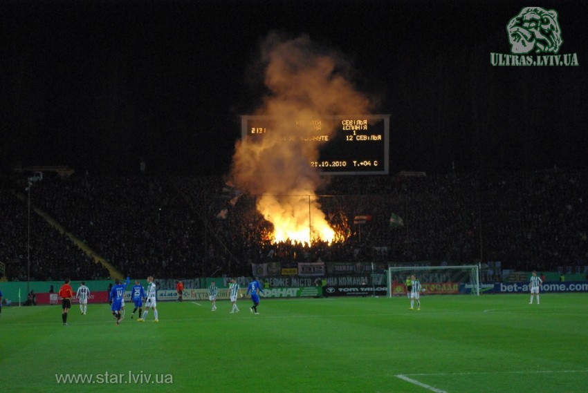 Карпати Львів - ФК Севілья. Cезон 2010 / 2011 р.р. Груповий раунд Ліги Європи, 3 тур, 21 жовтня 2010. Львів, ст. "Україна"